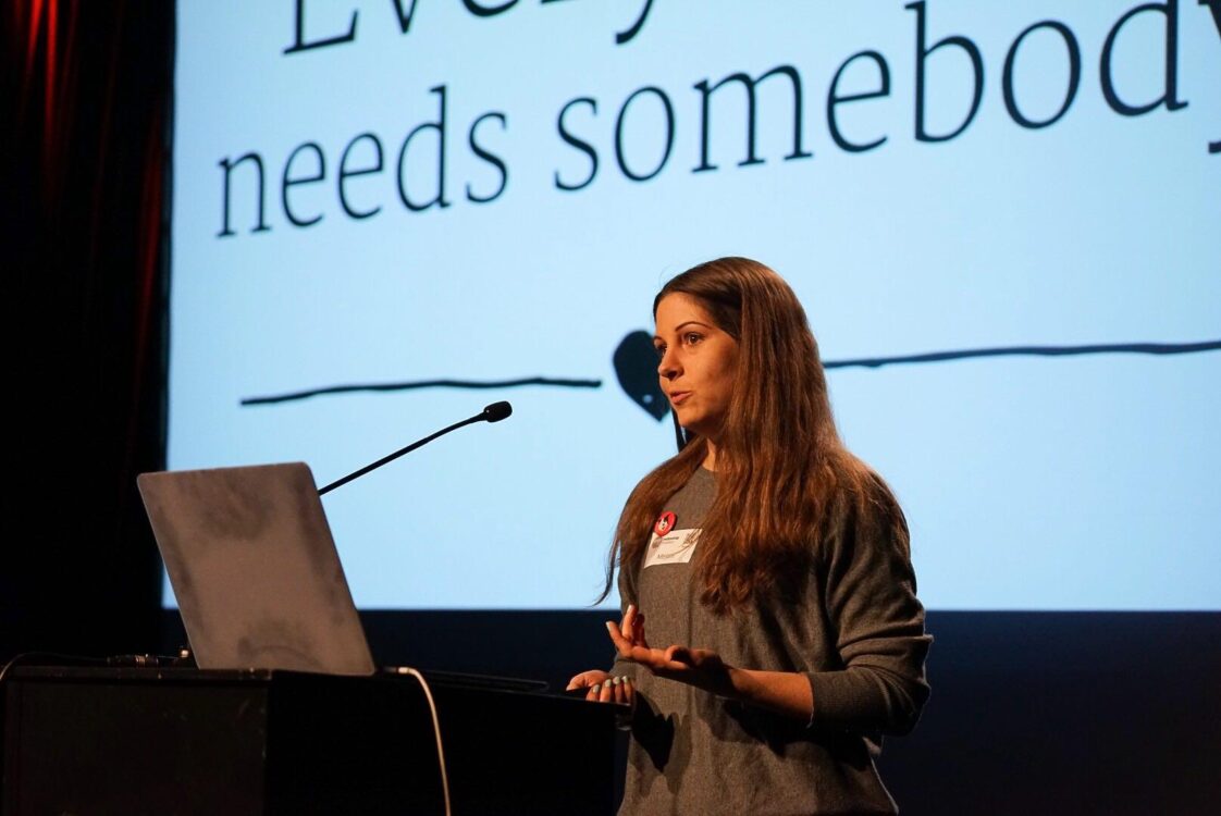 „Sucht euch Gleichgesinnte. Geht auf Tech Meetups oder Events, die euch als Zielgruppe ansprechen. Da trefft ihr auf Leute, die die gleichen Interessen wie ihr haben. Ihr könnt euch da eine Supportgruppe suchen oder Sparringspartner*innen. Achtet bei der Jobsuche darauf, euch die Werte eines Unternehmens sehr deutlich anzuschauen. Wählt die Firma aus, die eure Werte wiederspiegelt. Das kann man im Bewerbungsgespräch auch gut abfragen.“